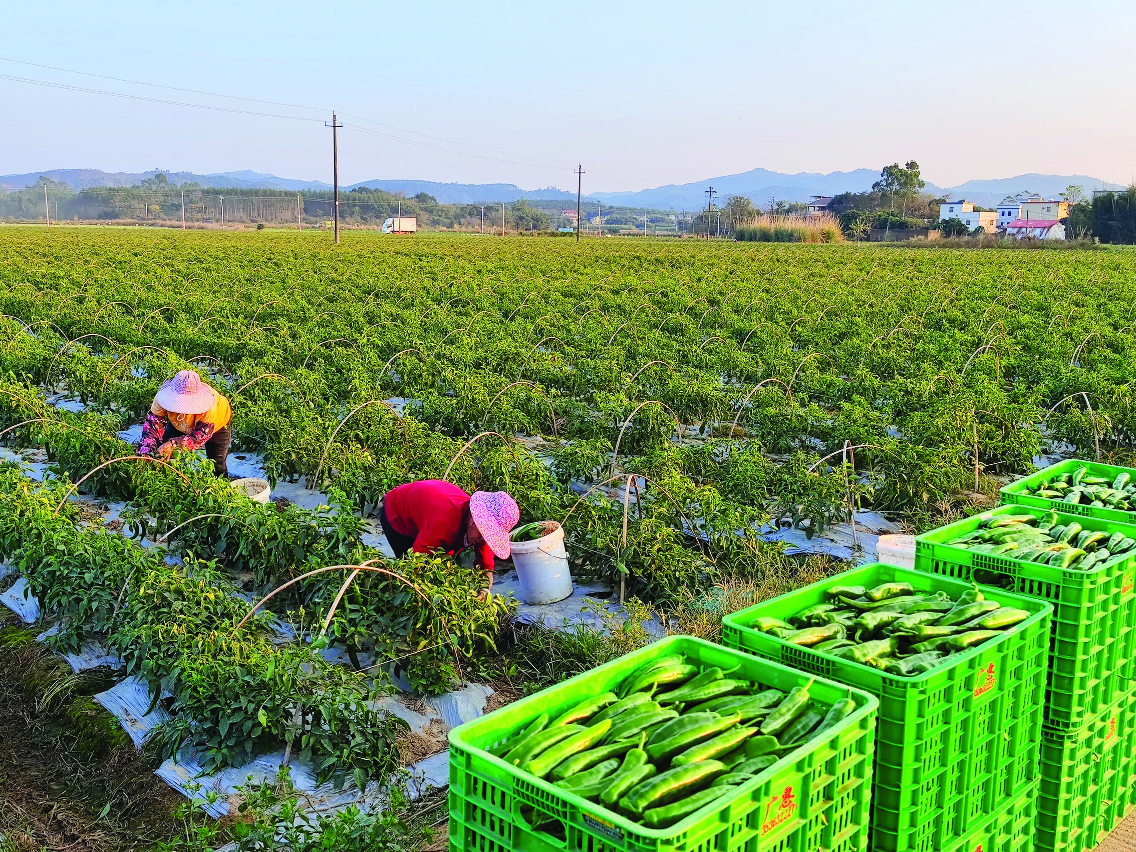 “當(dāng)時來到村里,看到有近800畝的連片土地丟荒了,覺得很可惜,于是我們通過土地流轉(zhuǎn)進行復(fù)耕復(fù)種!兵櫭r(nóng)業(yè)種植基地負責(zé)人孫永龍告訴記者,2022年,他們大力開荒復(fù)耕,種植辣椒、梅菜、小番茄等,2023年開始初步有了好的收成。