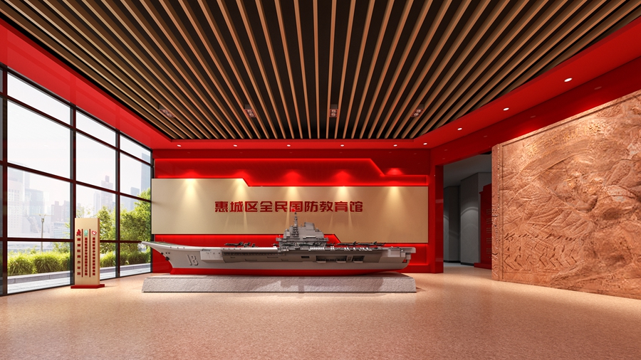 惠城區(qū)全民國(guó)防教育館展廳內(nèi)景圖。