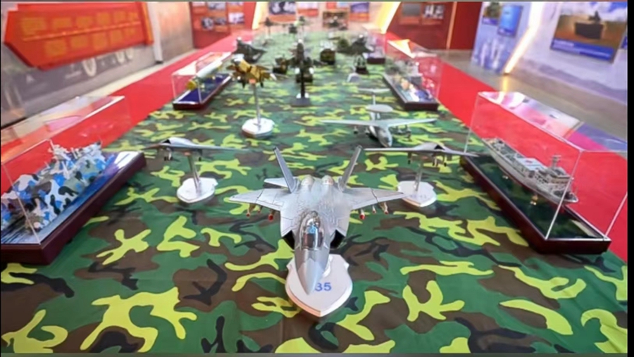 館內(nèi)陳列護(hù)國(guó)利器模型,展現(xiàn)新時(shí)代武裝設(shè)備建設(shè)成就。