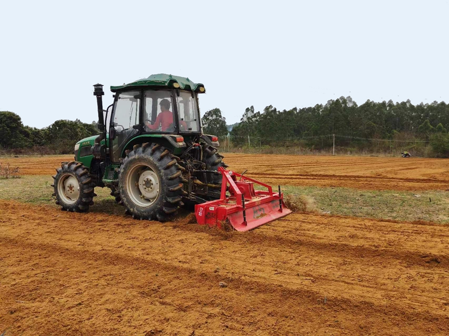 汝湖鎮(zhèn)平整撂荒地,開展春耕備耕工作;葜萑請笥浾吲砑t霞 通訊員蔡逸思 攝