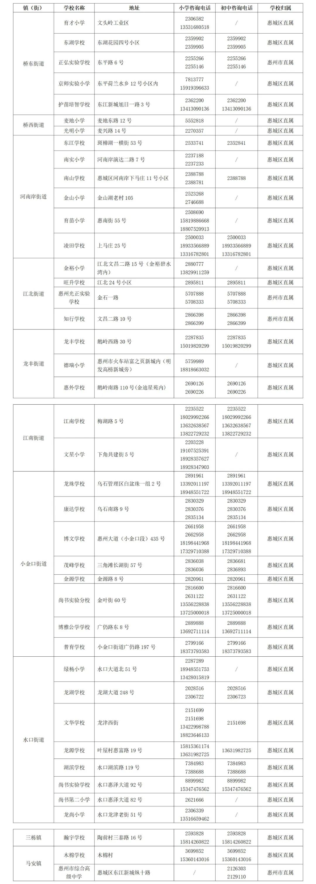 (一)民辦學(xué)校招生咨詢電話請(qǐng)下拉查看《惠城區(qū)屬及市直民辦學(xué)校招生電話表》。
