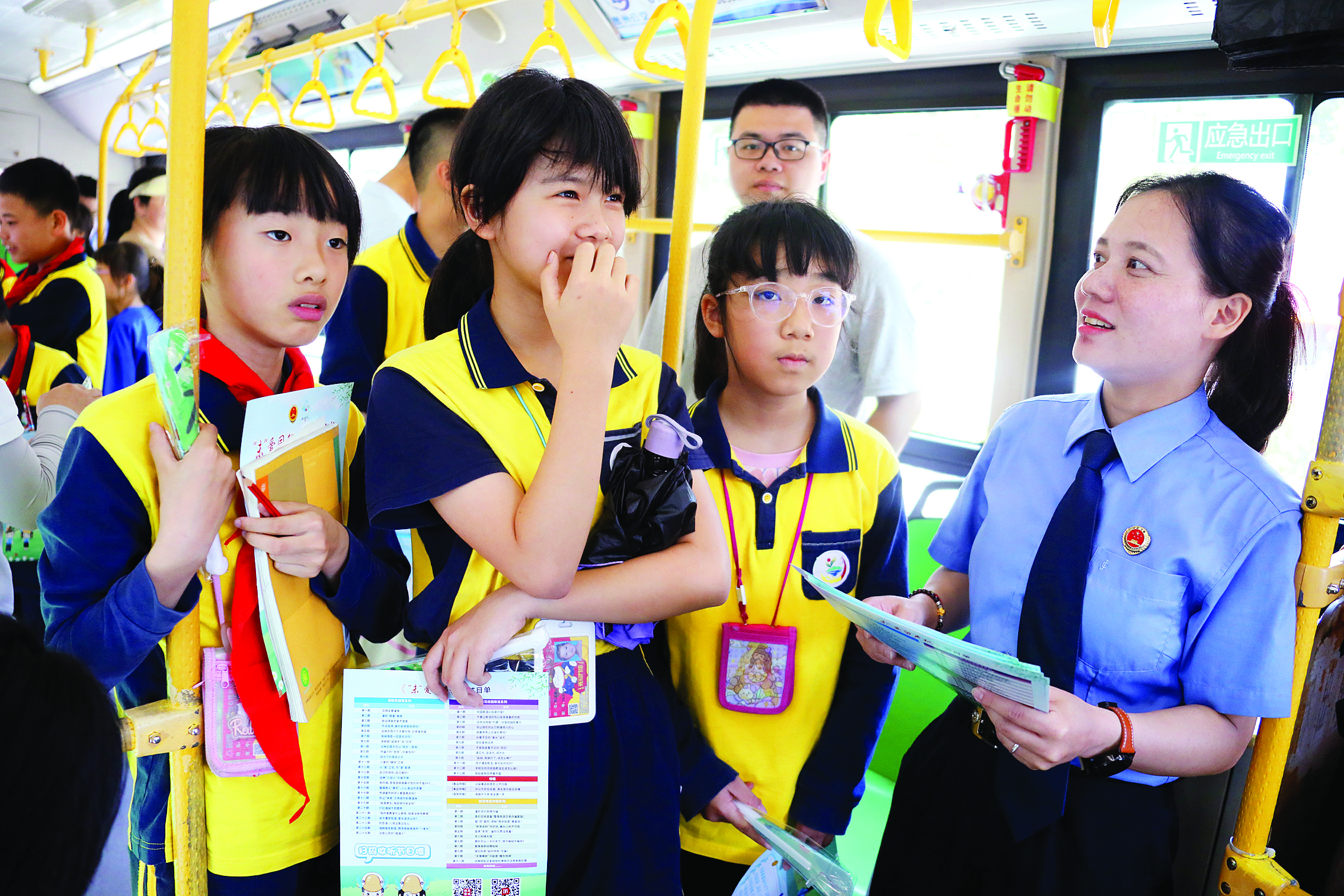 據(jù)悉,為進(jìn)一步擴(kuò)大普法宣傳的覆蓋面,惠城區(qū)檢察院創(chuàng)新普法載體,將未成年人法治宣傳工作與公交出行服務(wù)相融合,在途經(jīng)學(xué)校較多的37路、44路、54路等3條公交線(xiàn)路上,打造“小鵝絨”《“未”愛(ài)留聲機(jī)》宣傳專(zhuān)線(xiàn),以移動(dòng)式的普法宣傳形式,呼吁全社會(huì)增強(qiáng)共同保護(hù)未成年人的意識(shí)。