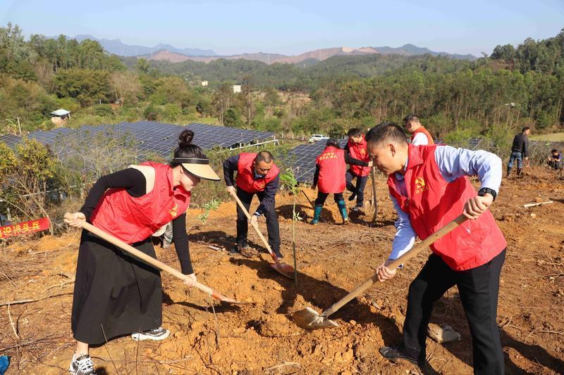 “前段時(shí)間在熱心鄉(xiāng)賢的協(xié)調(diào)下,我們村的‘黨建林’選好了地方,種下了一批紫花風(fēng)鈴木,等到開花時(shí)村里將新增一道美景!闭劦酱謇锝陂_展的綠美生態(tài)建設(shè)行動(dòng),南新村黨支部書記林冠輝介紹,這兩天村里還把600棵嘉寶果樹苗分發(fā)給有需求的村民種植,既有觀賞性又能摘果吃,很受大家的歡迎!按蠹抑矘涮砭G的積極性很高,在村干部和黨員的帶動(dòng)下,不少村民也參與到植樹活動(dòng)中來,大家都自覺地扮靚房前屋后的環(huán)境,積極建設(shè)綠美庭院。”林冠輝說。