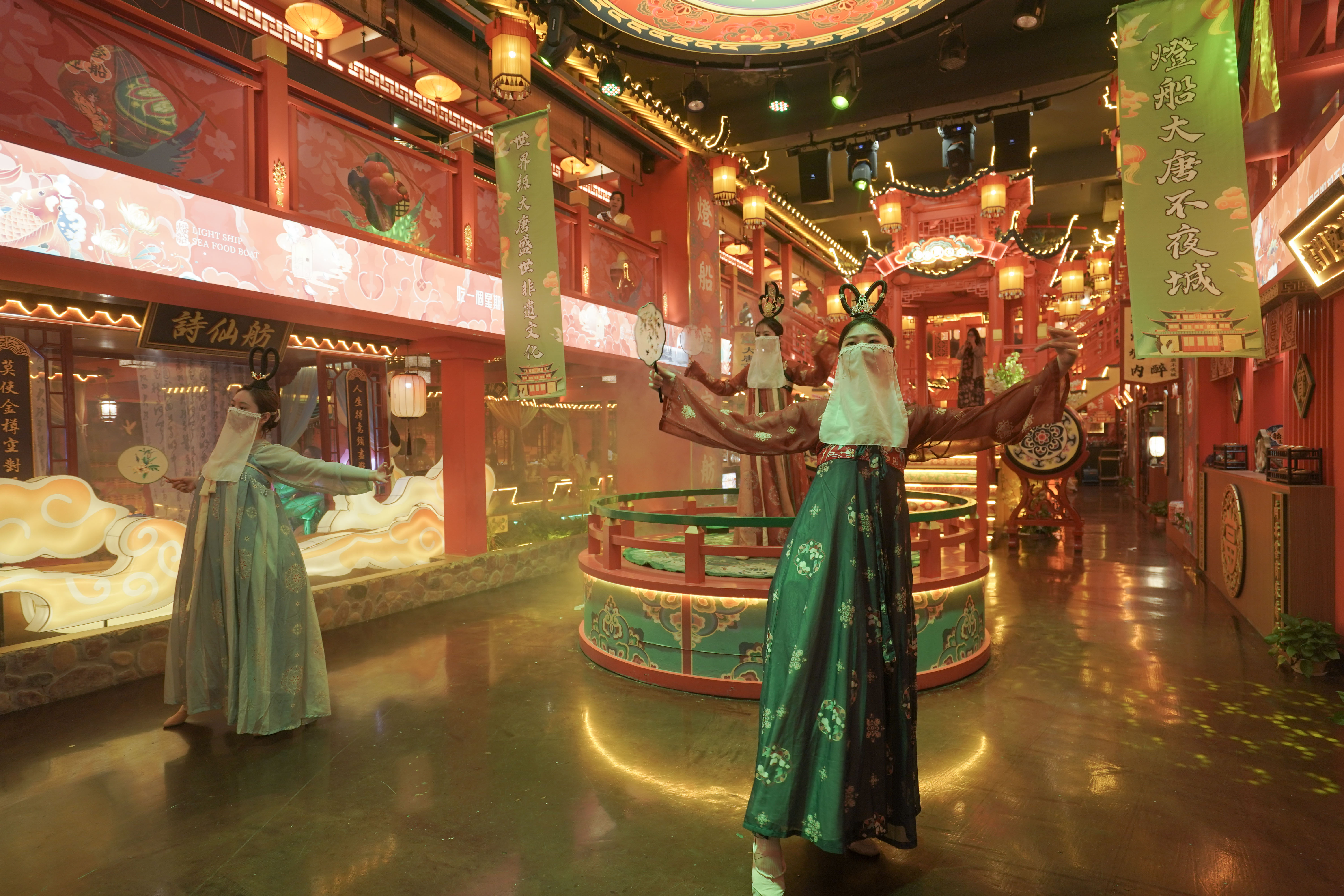 作為惠州首家沉浸式唐朝文化館,“燈船”大唐不夜城將唐朝盛世展現(xiàn)得淋漓盡致,消費者可在其中沉浸式感受大唐風華,參與感和互動性拉滿。