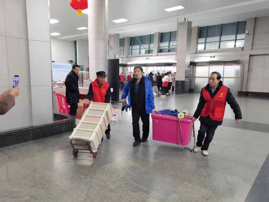 銀齡志愿服務(wù)隊隊員助力春運(yùn)(資料圖片)。