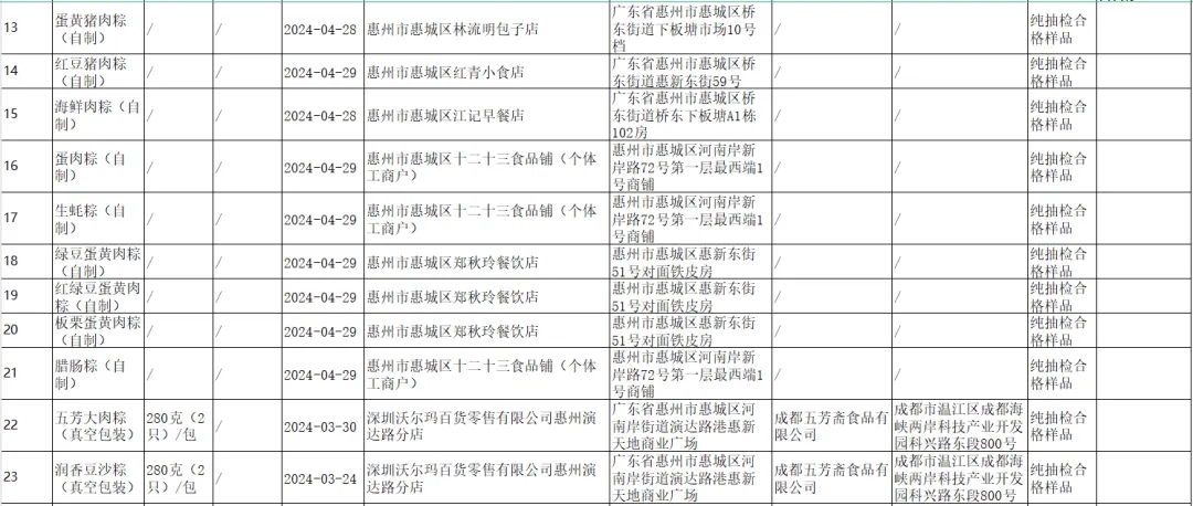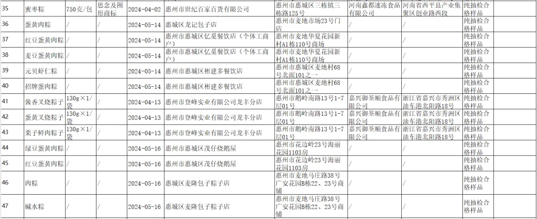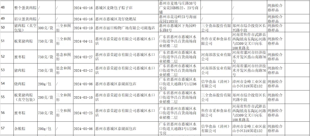 抽檢過程中,工作人員依據(jù)GB 2760-2014《食品安全國家標準 食品添加劑使用標準》、GB 29921-2021《食品安全國家標準 預(yù)包裝食品中致病菌限量》、SB/T 10377-2004《粽子》、GB 19295-2021《食品安全國家標準 速凍面米與調(diào)制食品》等標準的要求,對樣品的山梨酸及其鉀鹽、脫氫乙酸及其鈉鹽、糖精鈉、安賽蜜、甜蜜素、過氧化值、商業(yè)無菌、金黃色葡萄球菌、沙門氏菌、大腸菌群、菌落總數(shù)、霉菌等指標進行了檢驗,結(jié)果顯示,60件樣品全部符合相關(guān)食品安全標準,監(jiān)督抽檢合格率為100%。