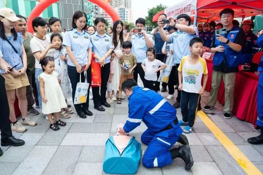 在應(yīng)急救援相關(guān)科目展示區(qū),中海物業(yè)(惠州)應(yīng)急救援隊(duì)對(duì)安全知識(shí)進(jìn)行生動(dòng)的場(chǎng)景演繹,一邊進(jìn)行心肺復(fù)蘇演示,一邊講解急救知識(shí),吸引了不少市民“打卡”,“零距離”學(xué)習(xí)應(yīng)急救援知識(shí)和技能。