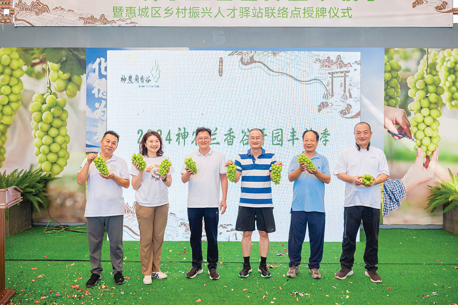 7月6日下午,第四屆陽(yáng)光玫瑰葡萄采摘節(jié)暨惠城區(qū)鄉(xiāng)村振興人才驛站聯(lián)絡(luò)點(diǎn)授牌儀式在惠城區(qū)馬安鎮(zhèn)龍?zhí)链迳褶r(nóng)蘭香谷生態(tài)農(nóng)業(yè)園舉行。