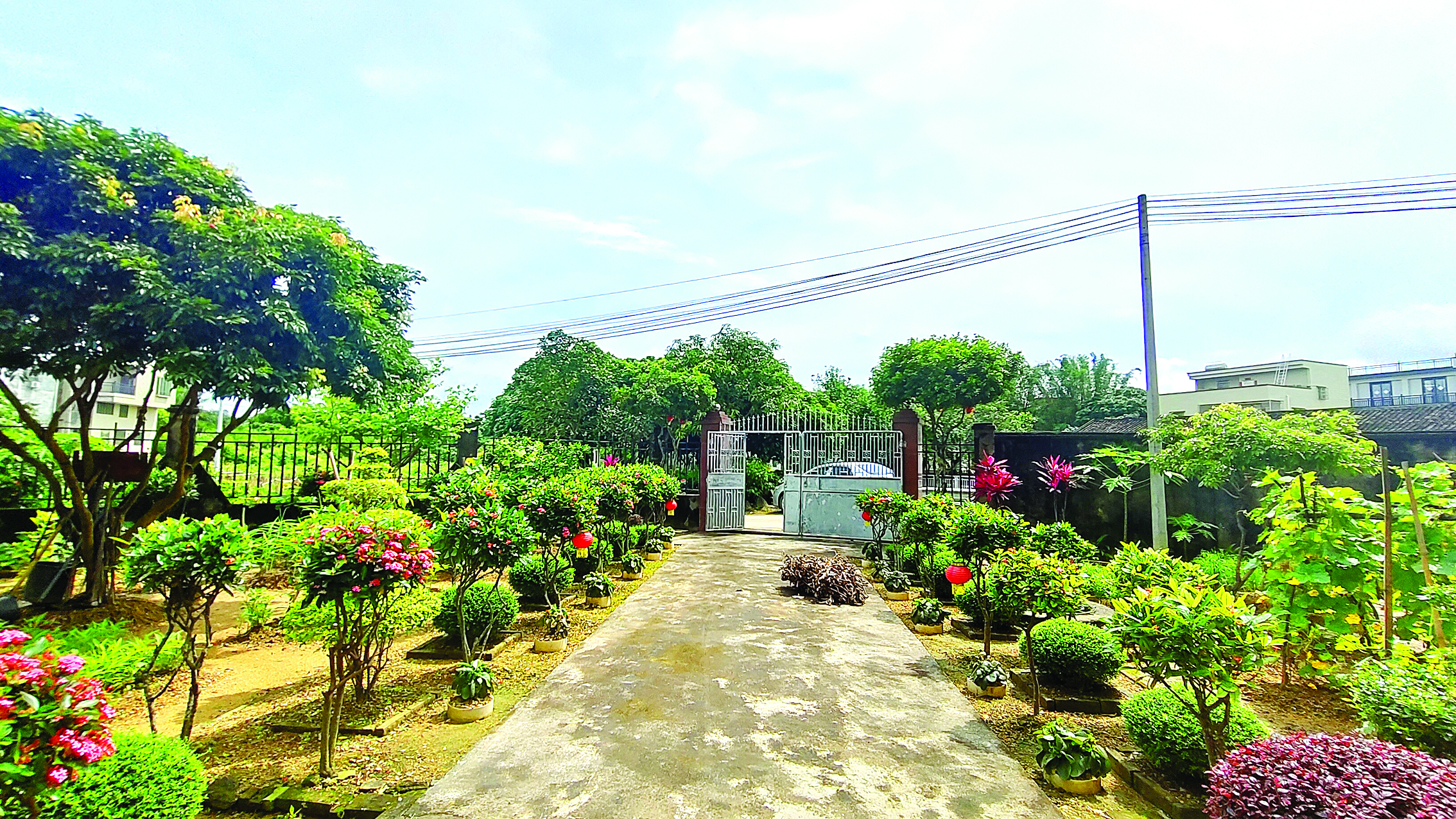“美麗庭院”就是美麗家園。在橫瀝鎮(zhèn)柯樹排村的一條村道邊,從一扇不起眼的鐵門入內(nèi),一眼望去可以看到一片別有“心”意的花園小天地,走在小徑上,兩側(cè)花草樹木生機(jī)盎然,錯(cuò)落有致,別具匠心,三層小洋樓充滿了幸福的生活氣息。
