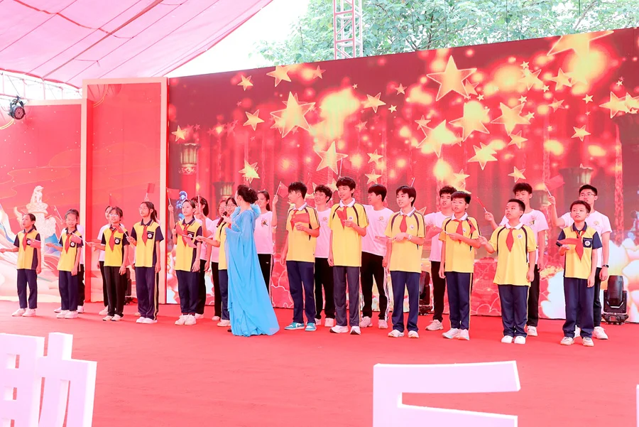 大學(xué)生帶著小學(xué)生,一起開(kāi)展文藝演出。