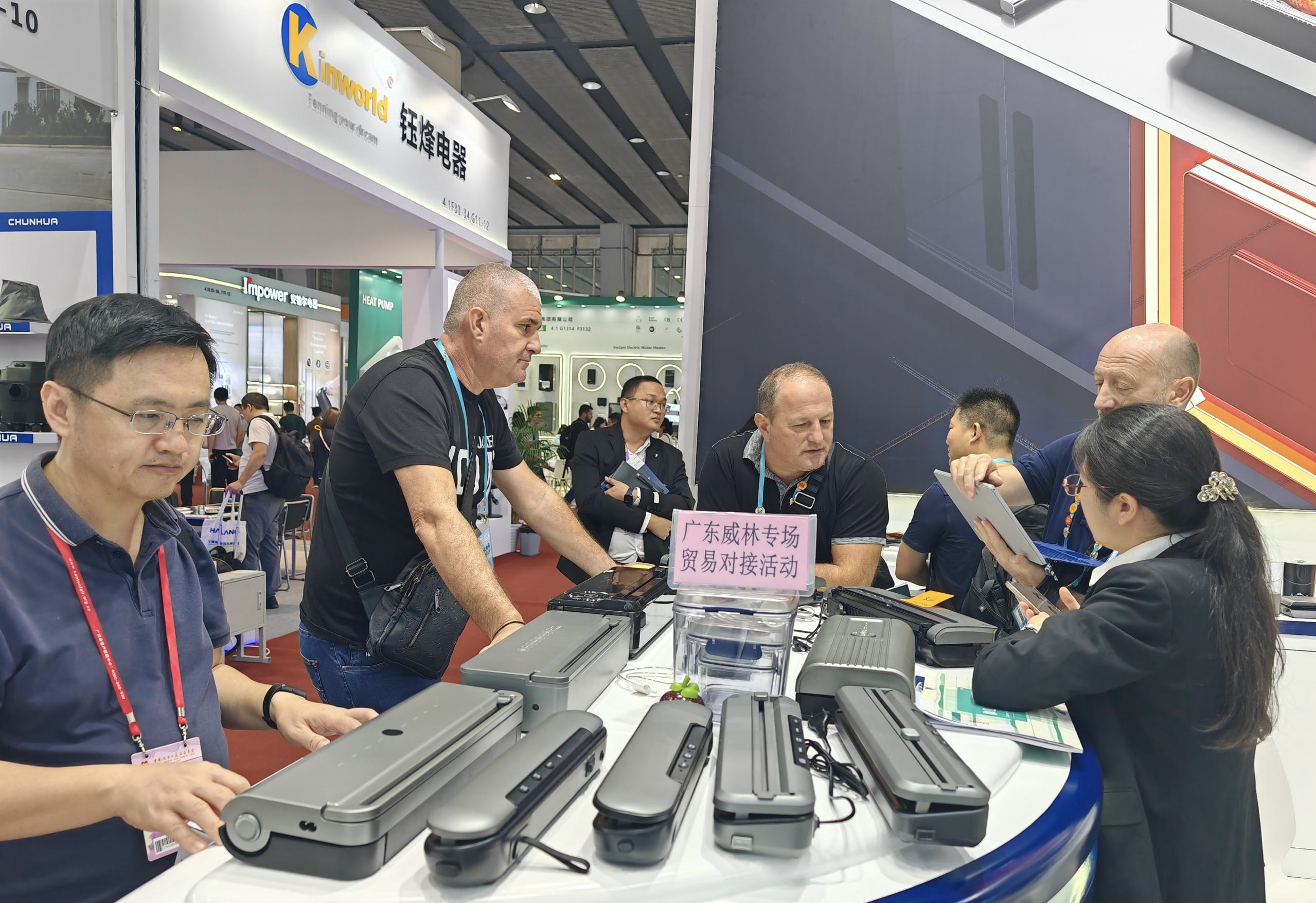 廣東威林科技股份有限公司展會負(fù)責(zé)人介紹,威林科技在此屆廣交會展出的主要是廚房電熱、食物真空包裝、制冰系列、烹飪系列(比如電磁爐、制冰機(jī))等四大系列的智能家電產(chǎn)品,總共上百款產(chǎn)品。