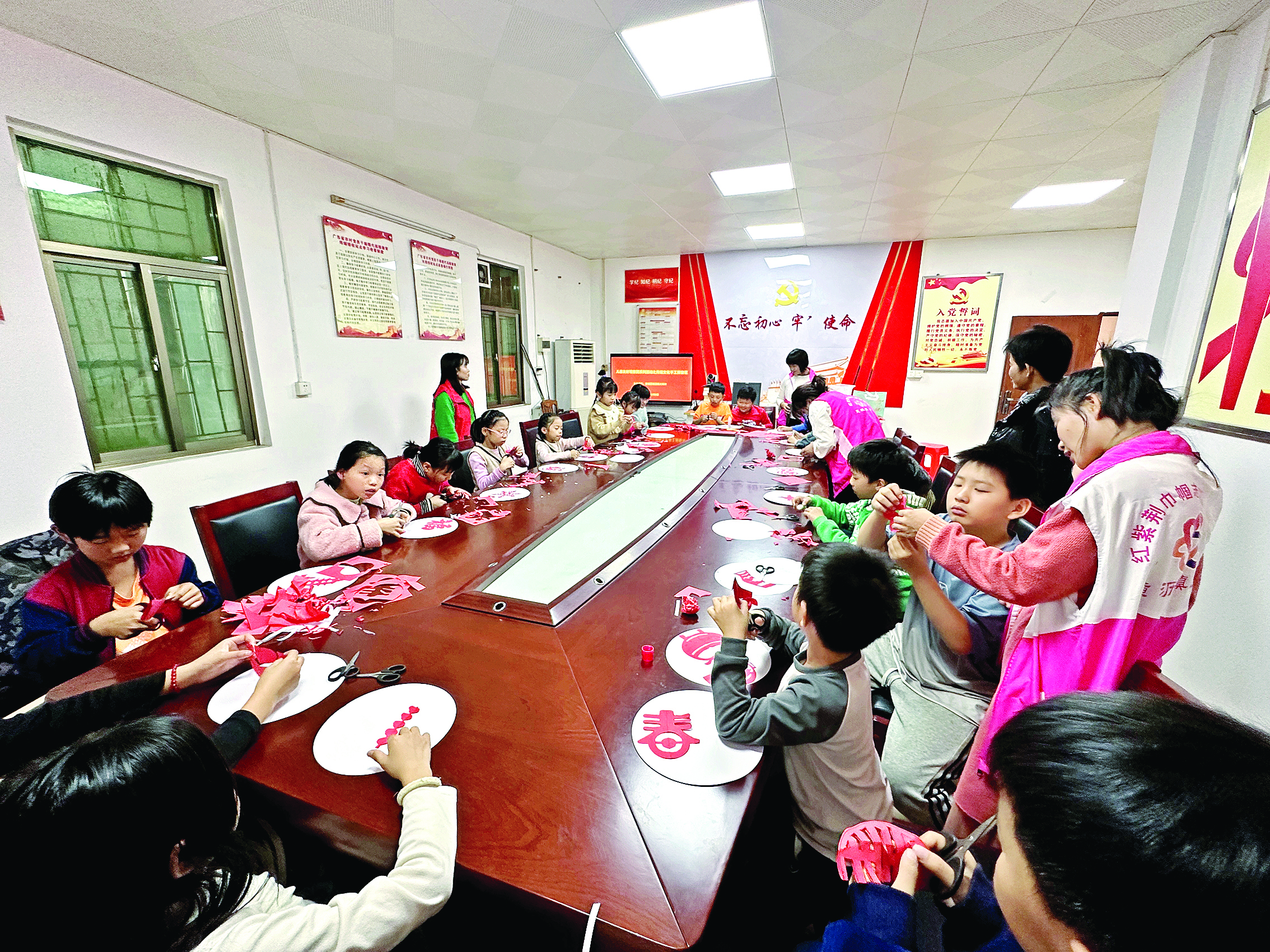 傳統(tǒng)窗花剪紙手工活動現(xiàn)場。 惠州日報記者謝菁菁 特約通訊員匡贇 通訊員鐘如茵 黃文南 攝