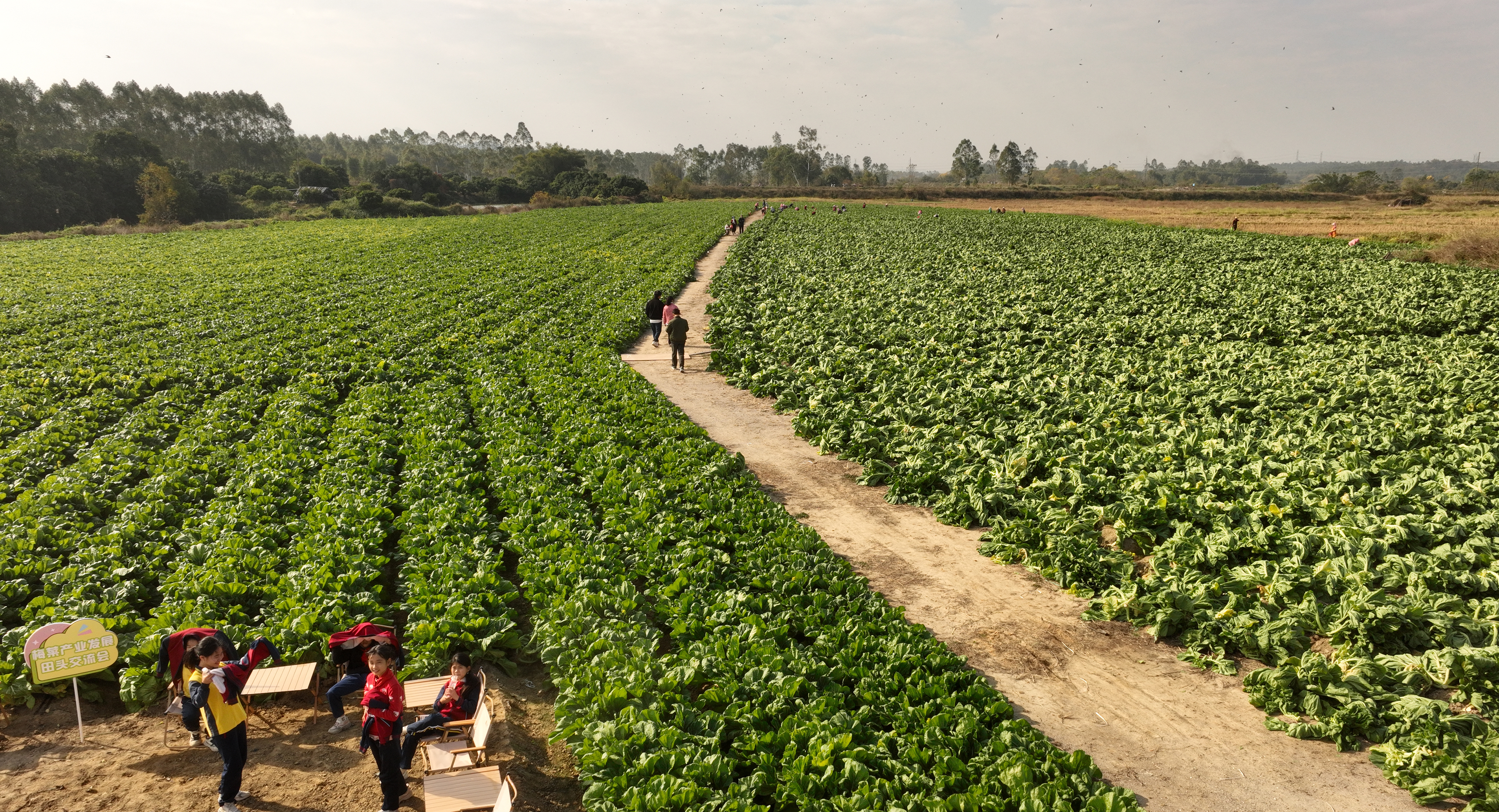 惠城區(qū)橫瀝鎮(zhèn)矮陂村連片的梅菜種植基地一片翠綠。惠州日報記者鐘暢新 攝