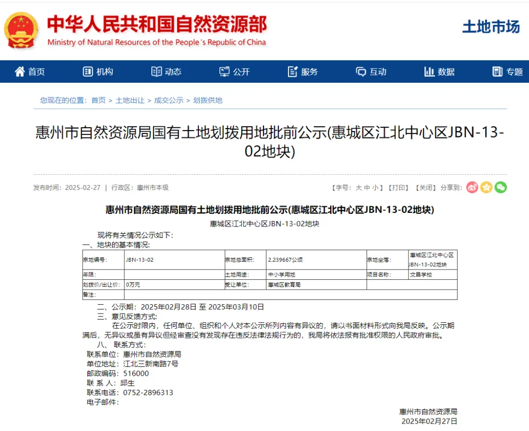 日前,惠州市自然資源局發(fā)布