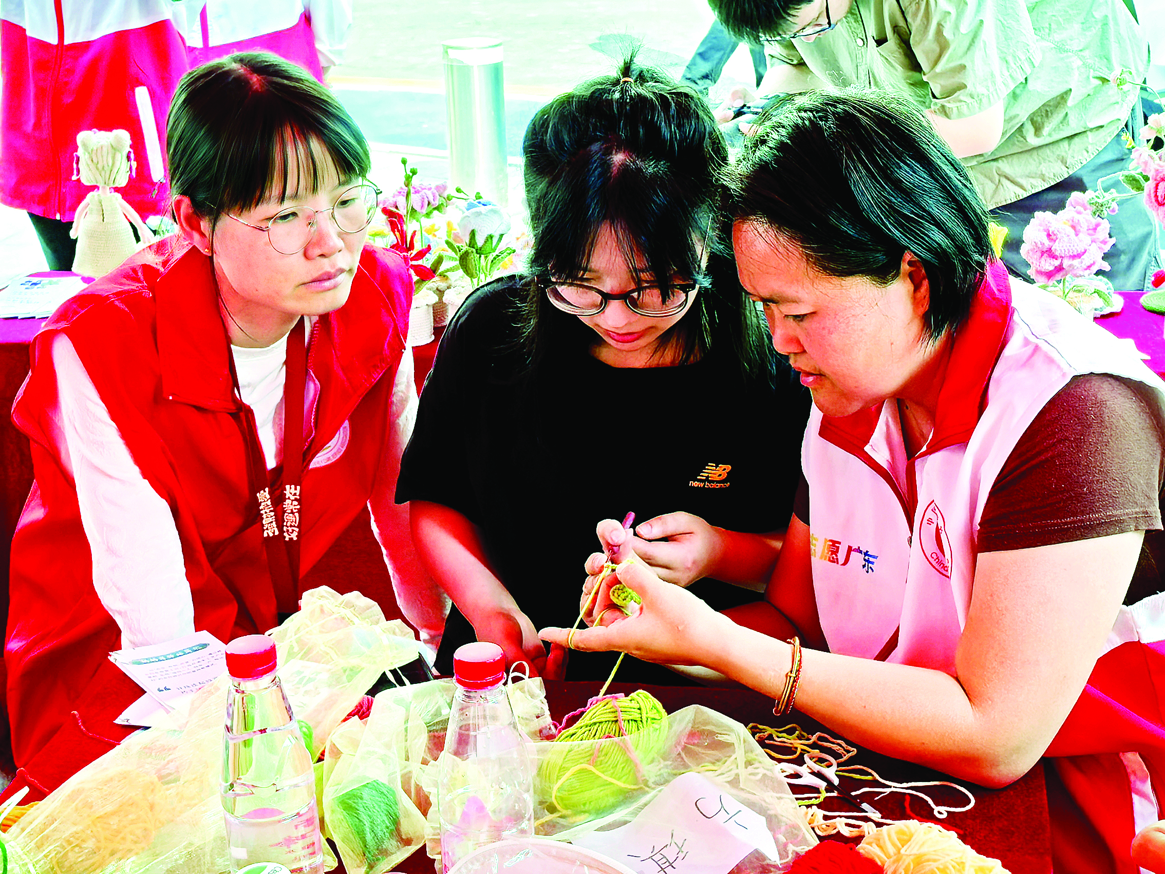 巧娘志愿服務隊志愿者現(xiàn)場教學;葜萑請笥浾咧x菁菁 攝