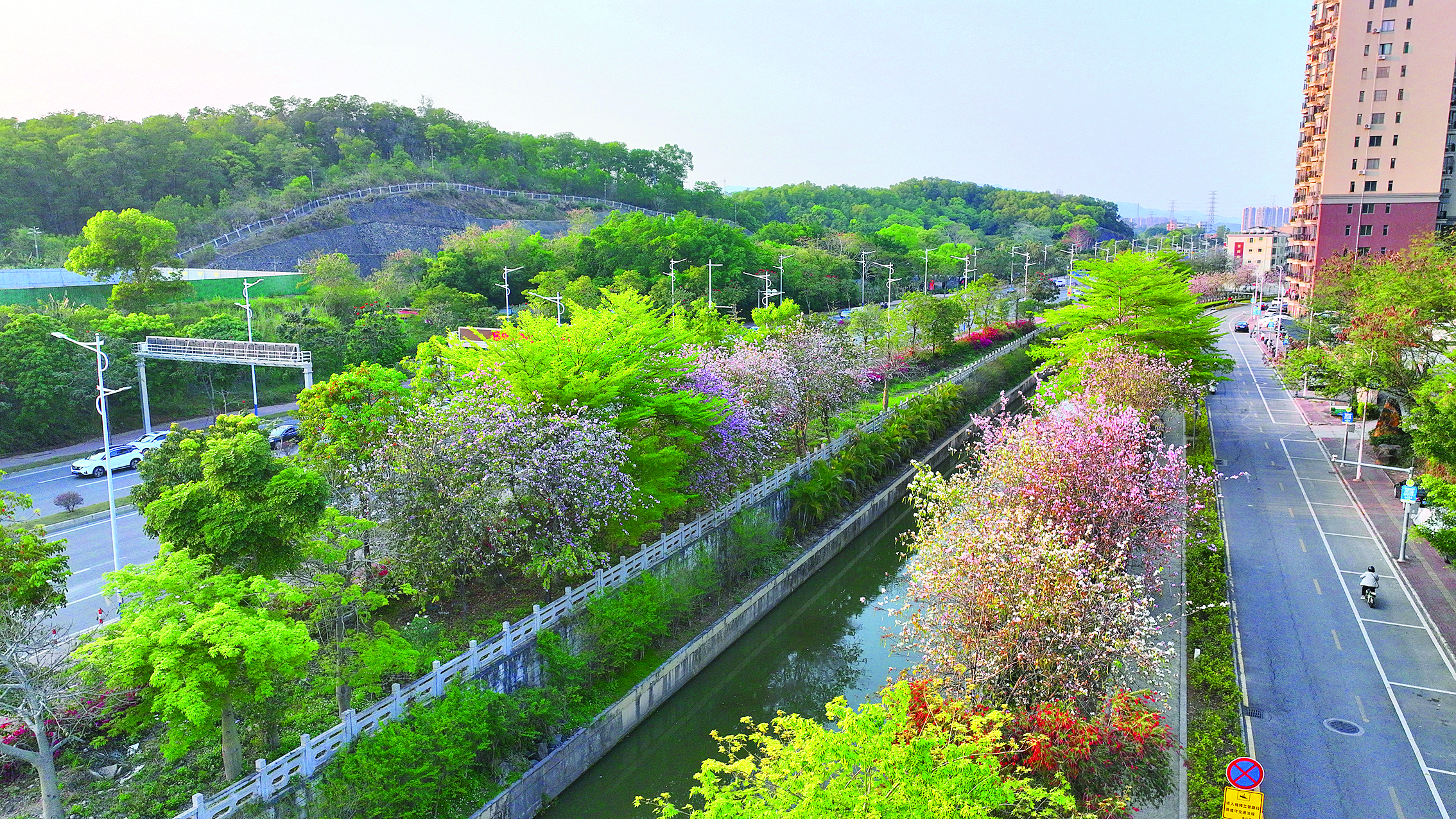 春天就是“處處生花”!各色春花接力綻放,花開之處,步步皆景。眼下,惠城區(qū)江南街道青年河兩岸一片春意盎然,一派繁花似錦,河畔沿線的親水棧道和綠道更是一道道靚麗的風景線,水清、岸綠、景美就在眼前,沿岸的橫槎小隱公園是市民休閑活動的好去處。