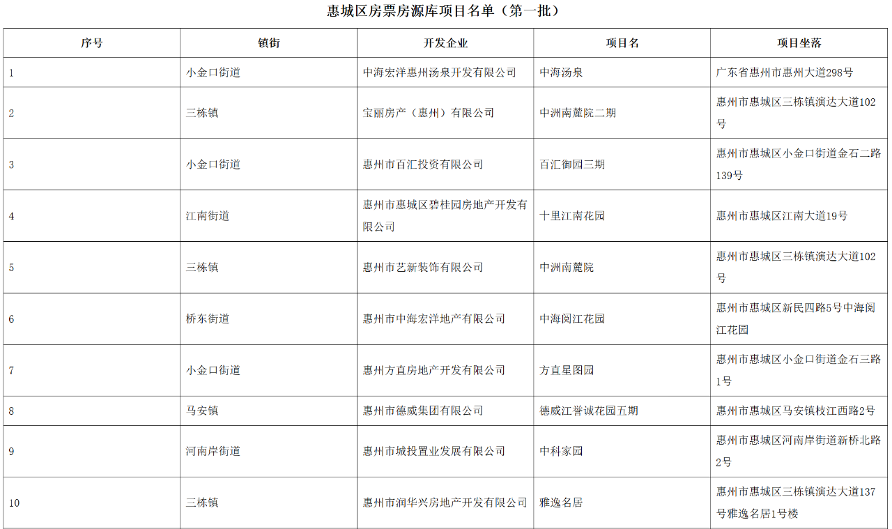 4月16 日,惠城區(qū)住房和城鄉(xiāng)建設(shè)局官網(wǎng)發(fā)布《關(guān)于公示惠城區(qū)房票房源(第一批)的通知》,對(duì)外公示首批房票房源名單,涉及 39 個(gè)房地產(chǎn)項(xiàng)目。此次公示的房票房源名單是根據(jù)此前發(fā)布的《關(guān)于公開征集惠城區(qū)房票房源的公告》,經(jīng)房地產(chǎn)企業(yè)自主,征集的房票房源。