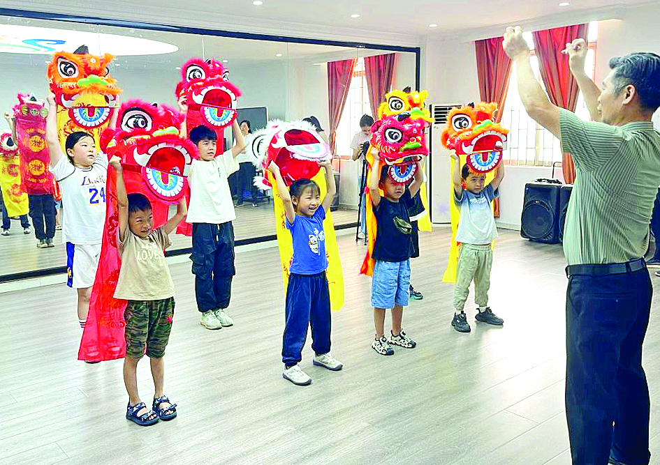 小朋友學習麒麟舞。 惠州日報記者彭紅霞 通訊員張金玲 曾芊秋 攝