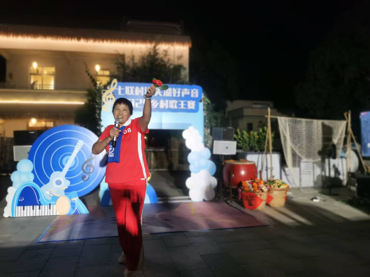 決賽當晚定在七夕,七夕情暖,鄉(xiāng)情亦溫馨。由村黨總支書記林志恒、村兩委委員及村小組長組成專業(yè)評委團,30位村民穿上齊整的紅色運動服、拿著喝彩投票的熒光棒,組成大眾評委團,共同見證了這場屬于鄉(xiāng)村的“民星之夜”。