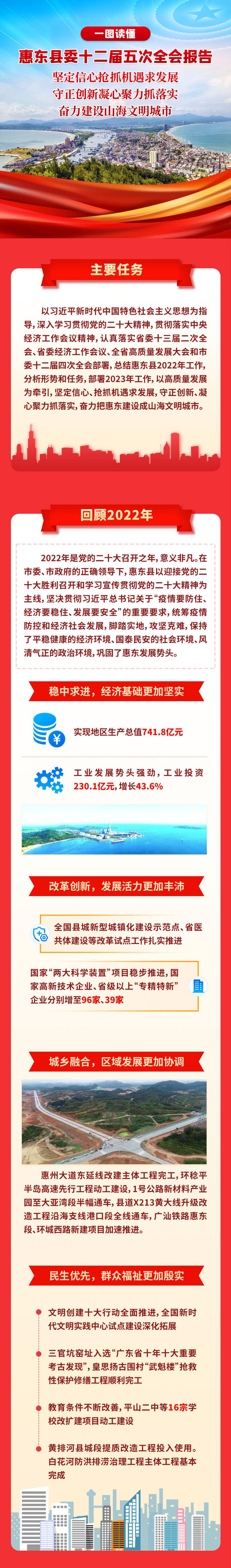 “立足惠東縣情,著眼長遠發(fā)展,把握大局大勢,明晰惠東所處的歷史方位,找準中國式現(xiàn)代化的惠東路徑!1月31日,中國共產(chǎn)黨惠東縣第十二屆委員會第五次全體會議召開,惠東縣委書記鄔澤勤代表縣委常委會向大會作報告。大會總結(jié)了去年惠東縣取得的各項成績,部署了今年工作。