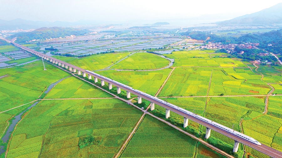 廈深高鐵在惠東大地飛馳而過(guò);葜萑?qǐng)?bào)記者楊建業(yè) 攝