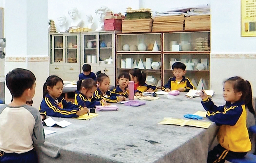 平山中心小學(xué)學(xué)生在上書(shū)法課。