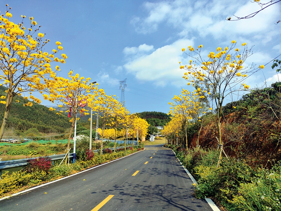 據(jù)介紹,大湖洋村民小組村民主要為畬族。幾年前,碧山村在上級支持下,開始按照打造特色主題村落的規(guī)劃,率先在大湖洋村民小組打造畬族文化主題村落。目前,該村民小組民居統(tǒng)一粉刷,并畫上民族風(fēng)情墻繪,村里配套建設(shè)小公園及民族風(fēng)情展示區(qū),村道及周圍種上黃花風(fēng)鈴木和紫荊花……一個極具民族風(fēng)情的村落全新展露,吸引了眾多游客前來打卡。