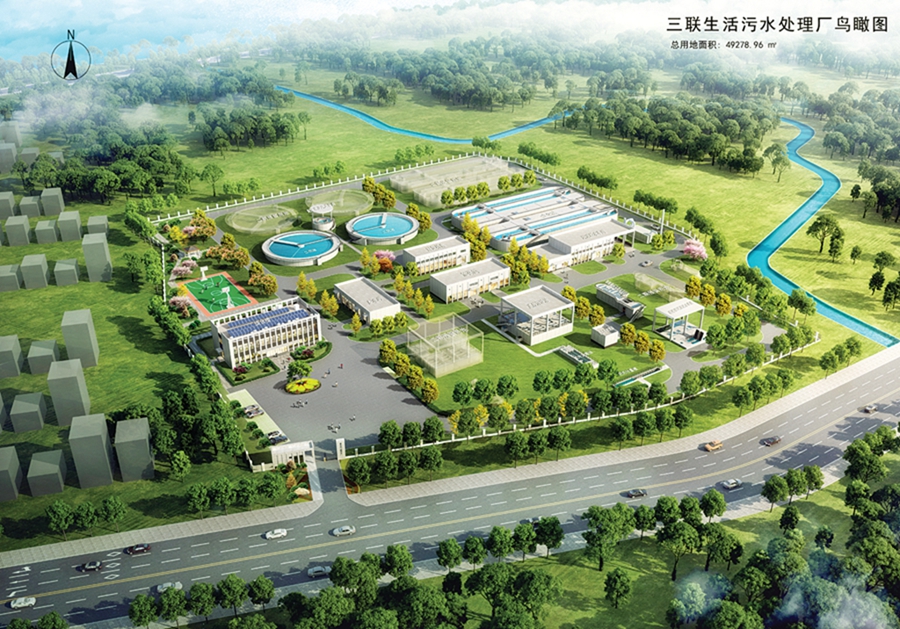 三聯(lián)生活污水處理廠鳥(niǎo)瞰圖。