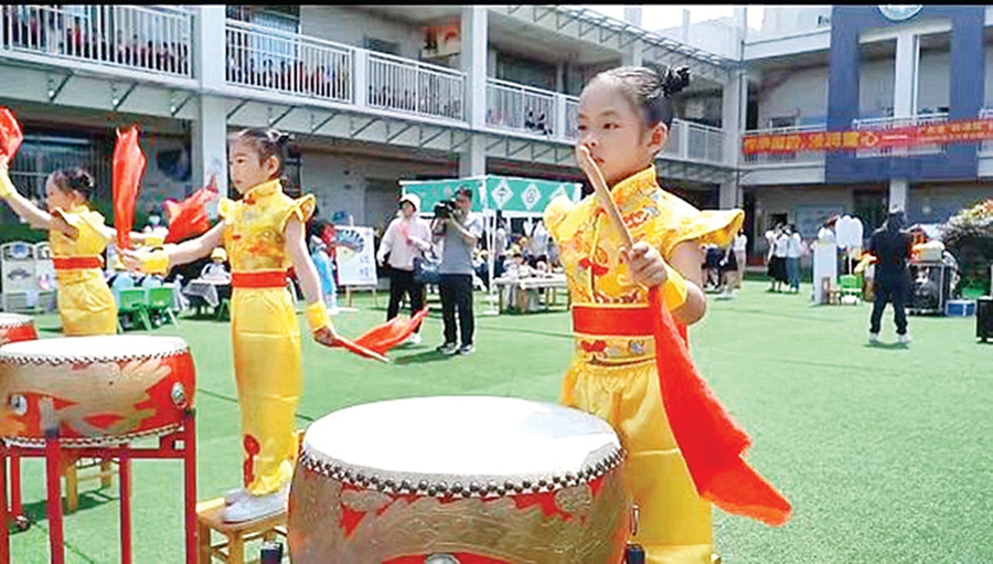 小朋友進(jìn)行民俗活動展演。 惠州日報記者賴金朗 特約通訊員李文聰 攝