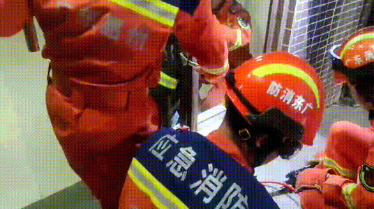到達現(xiàn)場后,消防員根據(jù)實際情況,立即使用手動破拆工具實施救援。