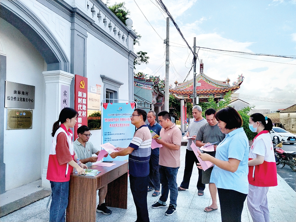 鐵涌鎮(zhèn)油麻地村新時(shí)代文明實(shí)踐站門口設(shè)立惠農(nóng)政策宣傳咨詢點(diǎn)。 惠州日?qǐng)?bào)記者蔡偉健 特約通訊員葉衍達(dá) 攝