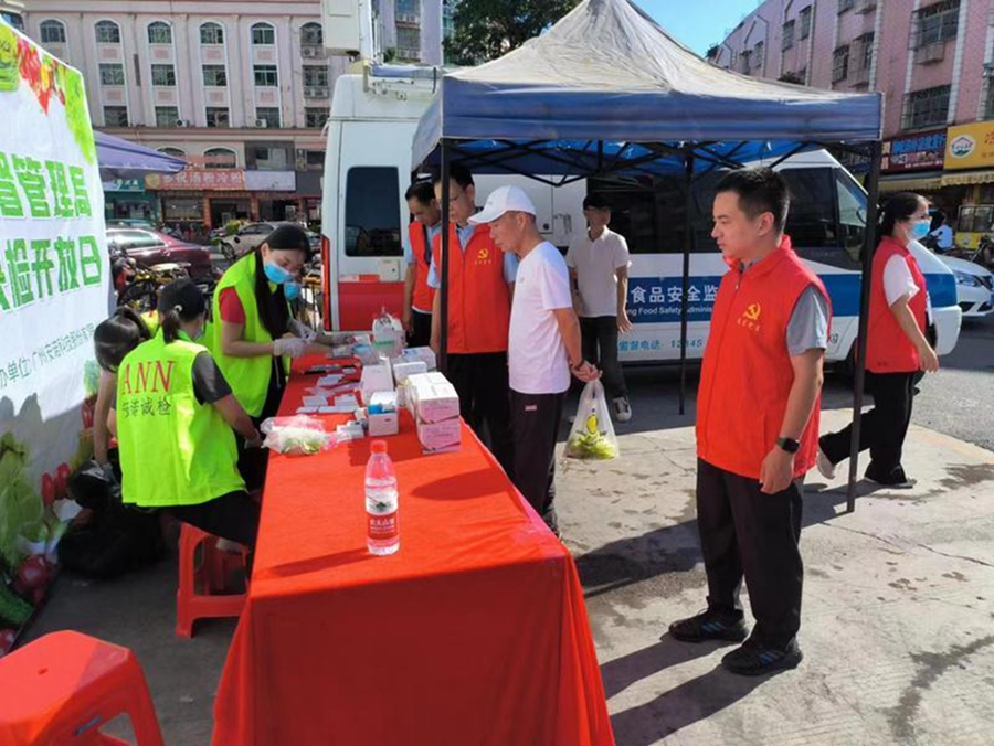 “阿姨,我們這里可以對(duì)米、蔬菜等農(nóng)產(chǎn)品進(jìn)行檢測(cè),讓你們吃得放心、安心!被顒(dòng)現(xiàn)場(chǎng),專業(yè)檢測(cè)人員對(duì)過往群眾送檢的農(nóng)產(chǎn)品進(jìn)行取樣、登記、分裝,對(duì)果蔬中的農(nóng)藥殘留、肉類的獸藥殘留等進(jìn)行快速檢測(cè),并現(xiàn)場(chǎng)告知檢測(cè)結(jié)果?鞕z中心、市場(chǎng)監(jiān)管所、承檢機(jī)構(gòu)的黨員向市民介紹農(nóng)殘獸殘的危害,提醒廣大市民在選購(gòu)濕米粉等食品時(shí)認(rèn)真查看生產(chǎn)日期、保質(zhì)期和儲(chǔ)存條件,嚴(yán)防食品安全風(fēng)險(xiǎn),同時(shí)現(xiàn)場(chǎng)普及涼菜生腌潛在的食品安全隱患等食品安全知識(shí)。此次活動(dòng)有效增強(qiáng)市民對(duì)食品安全的認(rèn)識(shí)和了解,減少食品安全事故的發(fā)生。