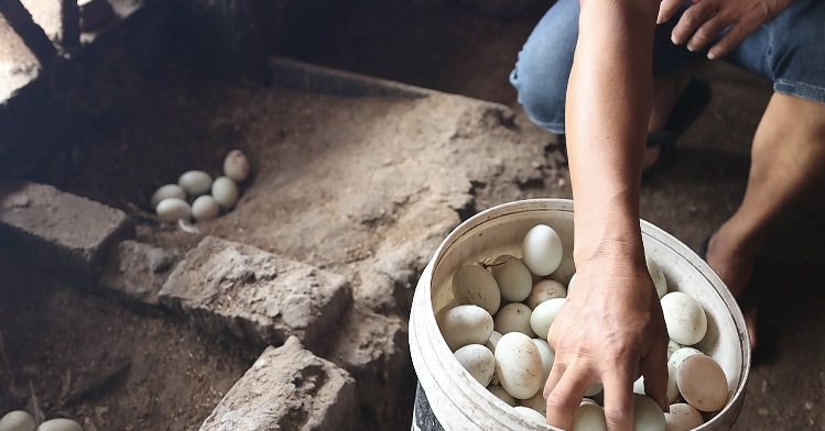 由于生長在海邊,而且吃海鮮長大,所以這里的鴨子被形象地叫作海鴨,產(chǎn)下的蛋則稱為海鴨蛋。海鴨蛋養(yǎng)殖戶林漢江告訴記者,他家兩代人都靠賣海鴨蛋為生。每天早上他就開始撿鴨蛋,每天能撿1000多個。林漢江表示,吃玉米和海鮮長大的海鴨生出的海鴨蛋金黃透亮,幾乎沒有腥味。他每天預(yù)留出部分新鮮鴨蛋后剩下的都用海鹽和黃泥腌制起來。腌制過后的鴨蛋香味撲鼻,滿口盈香。