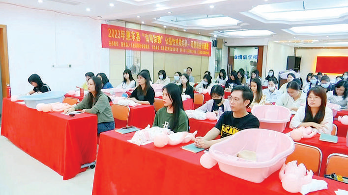 “南粵家政”公益性技能培訓(xùn)——母嬰服務(wù)培訓(xùn)班開班。 惠州日報(bào)記者賴金朗 特約通訊員李文聰 攝