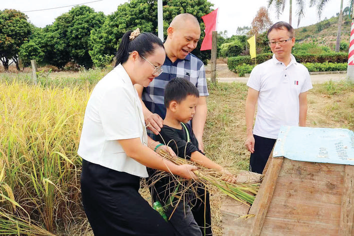 市民體驗打稻谷。 惠州日報記者賴金朗 特約通訊員陳超 攝