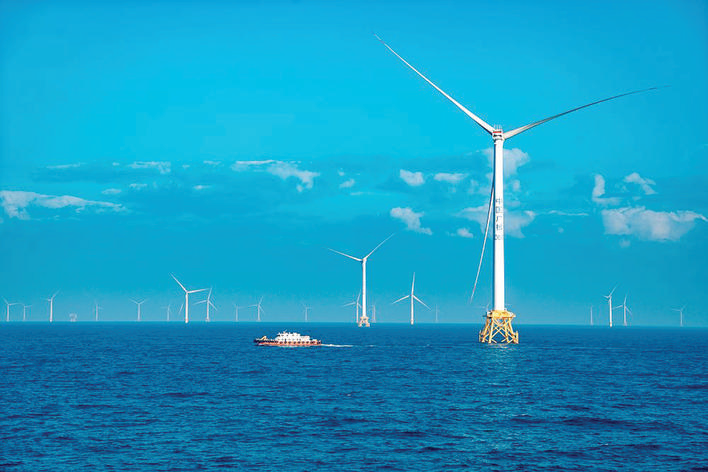 二期海上風(fēng)電項目距離陸地最近距離約22公里,布置10臺8.5兆瓦風(fēng)機、45臺12兆瓦風(fēng)機、9臺14兆瓦風(fēng)機,配套建設(shè)1座220千伏海上升壓站,同時擴建陸上集控中心。今年6月11日完成首臺風(fēng)機吊裝后,按計劃陸續(xù)完成海上升壓站吊裝、全場風(fēng)機基礎(chǔ)施工、陸上集控中心受電、海上升壓站受電等重要節(jié)點,目前風(fēng)機吊裝工程完工在即。