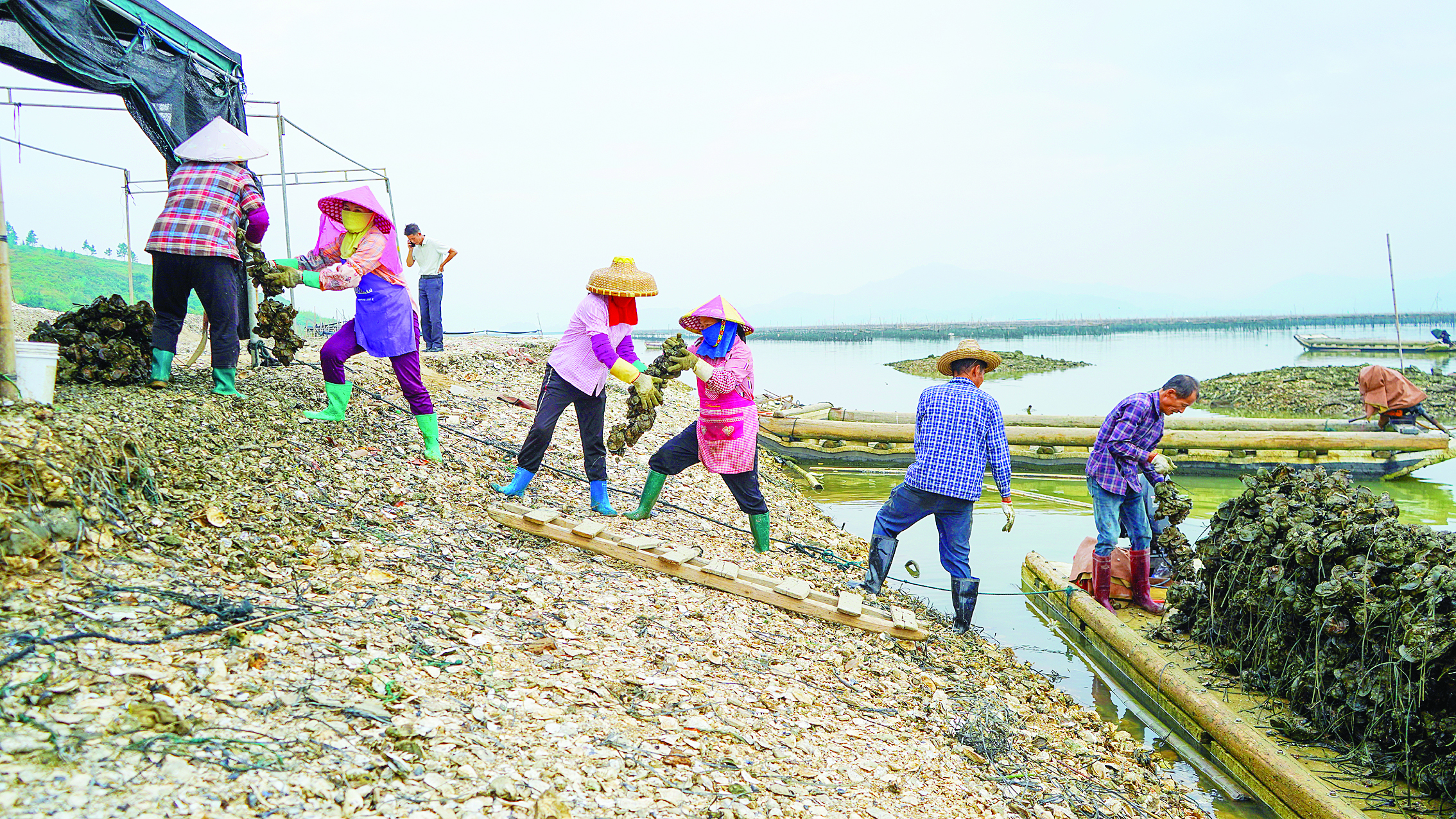 惠東鐵涌赤岸村,村民把生蠔打撈上岸;葜萑請笥浾邷搴 陳濤 攝