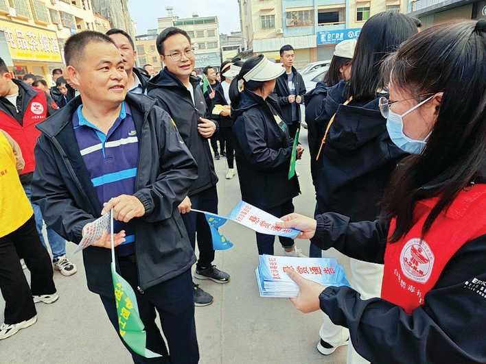 志愿者派發(fā)禁毒宣傳資料。 惠州日報記者蔡偉健 特約通訊員朱建文 通訊員郭曉鋒 攝
