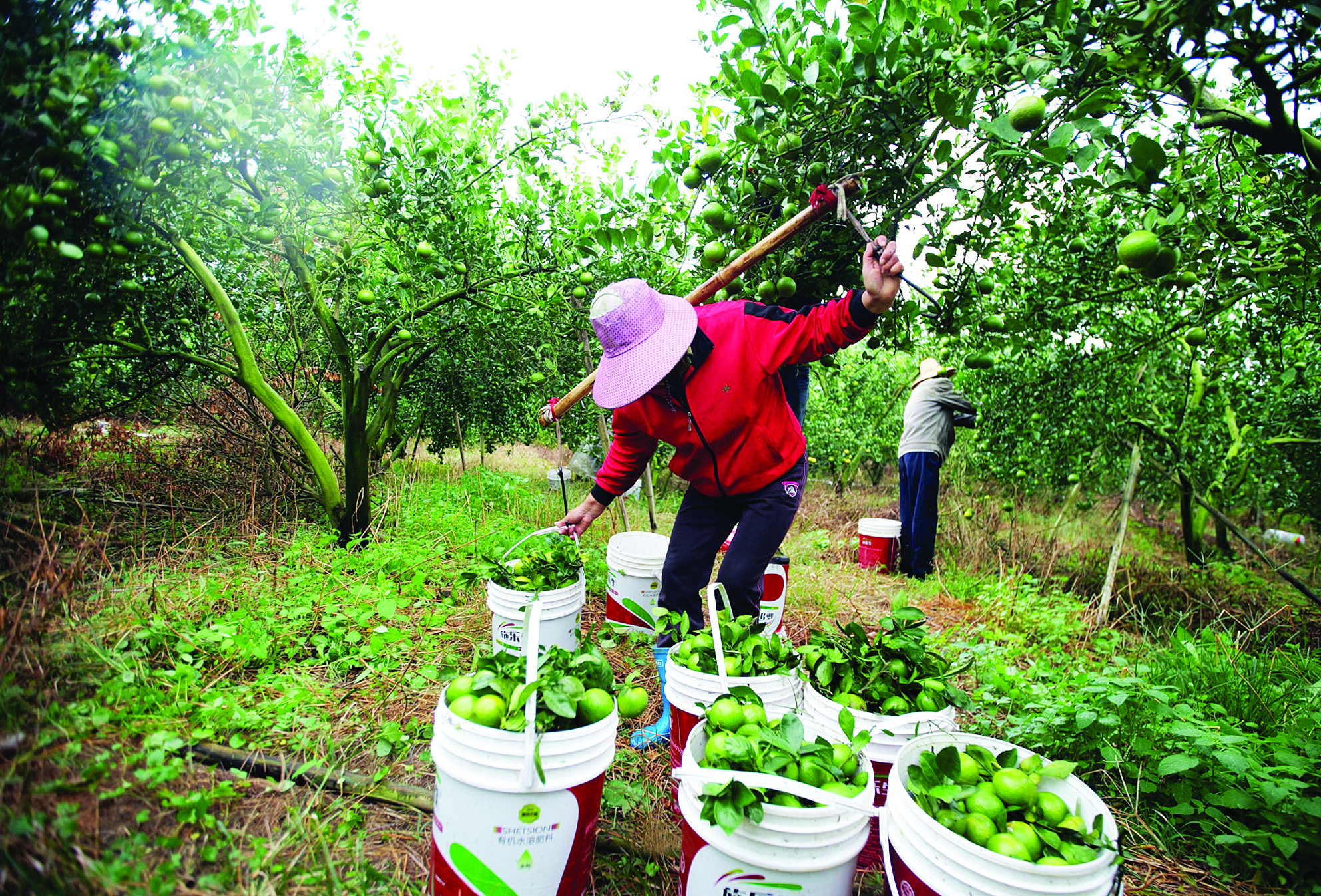 “阿庭哥,今天要臨時(shí)多收2萬(wàn)斤果,趁雨停了,趕緊再?gòu)拇謇锝袔讉(gè)人過(guò)來(lái)幫忙采摘一下!闭f(shuō)話的人叫葉少棠,是橫江村山瑤柑種植基地的銷(xiāo)售經(jīng)理。
