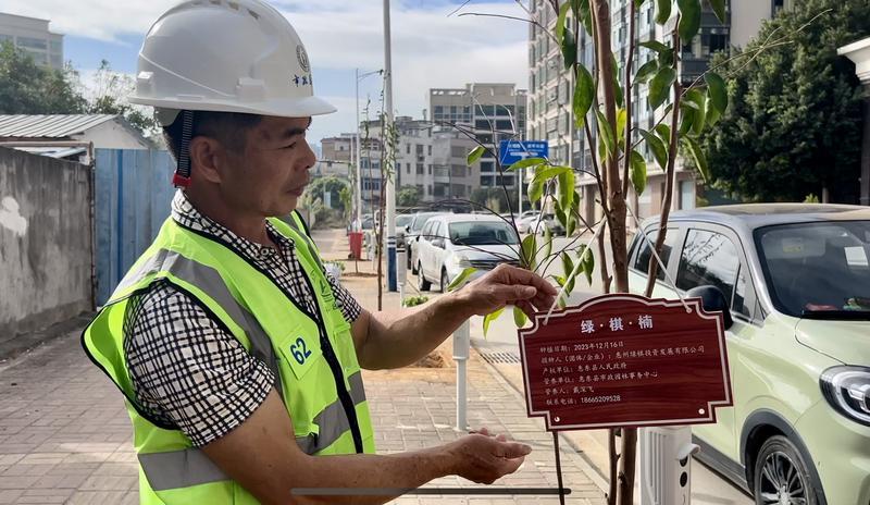 日前,記者在惠東縣城黃排河南岸的健身路看到,道路兩邊綠化池栽種了高2米、胸徑4厘米左右的綠棋楠沉香樹苗,工作人員對樹苗進行加固和綠化。不少樹苗掛上了印有捐贈企業(yè)、養(yǎng)護單位等信息的牌子。