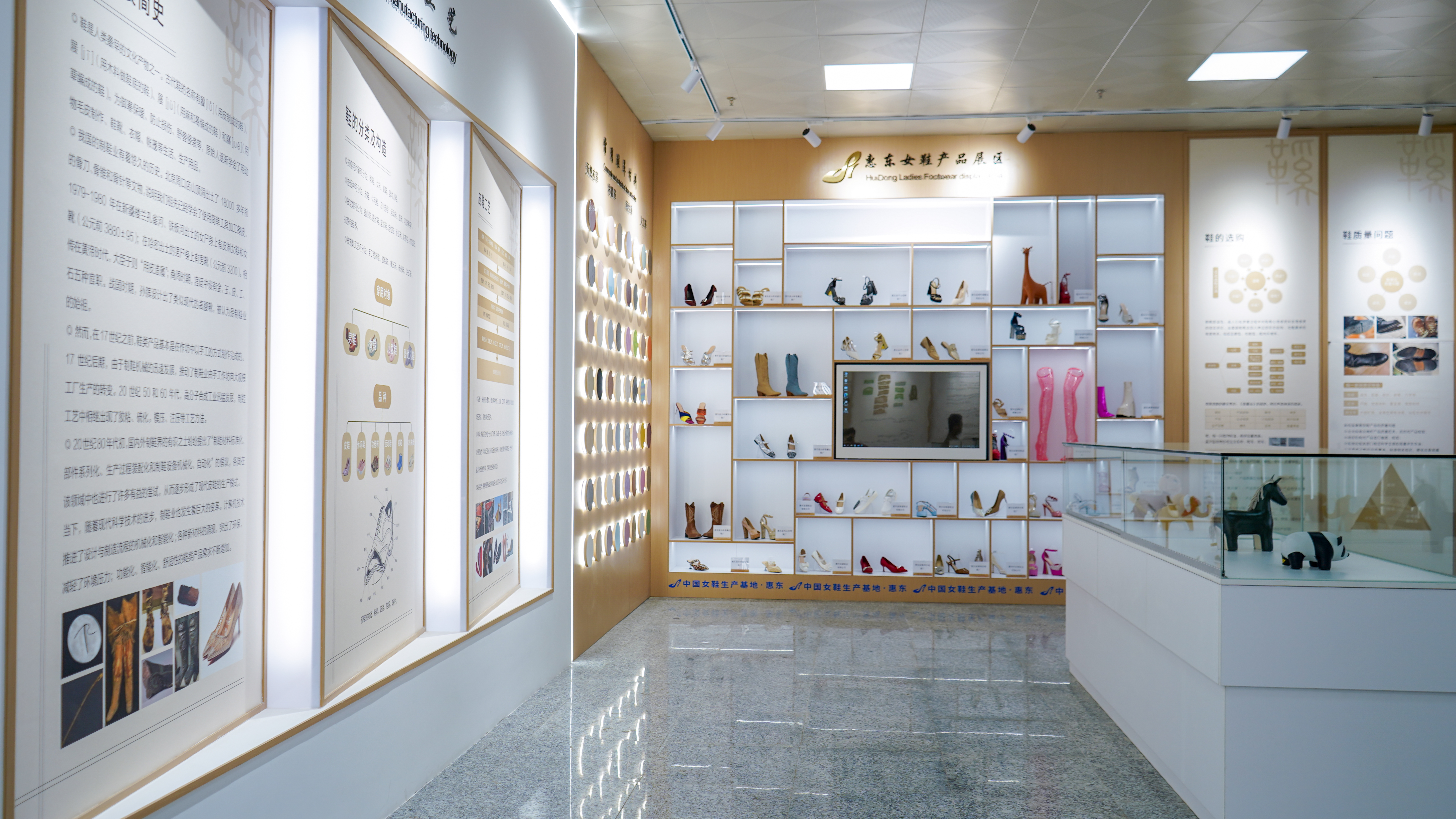 國家鞋檢中心展廳惠東女鞋產(chǎn)品展區(qū);葜萑請笥浾哧悵 攝