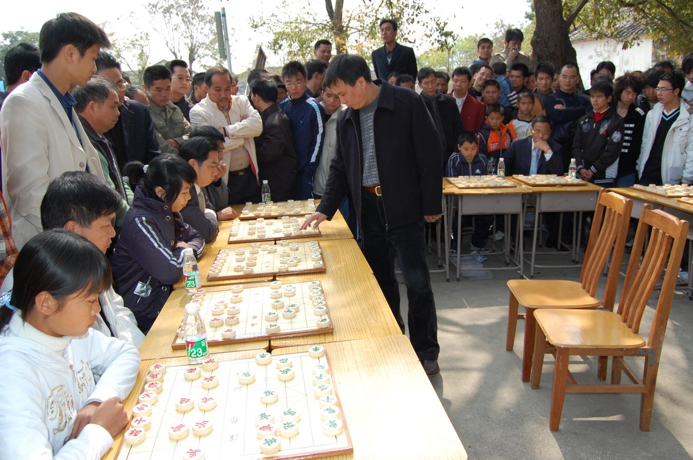 國際特級象棋大師呂欽回鄉(xiāng)與村民進(jìn)行車輪戰(zhàn)。