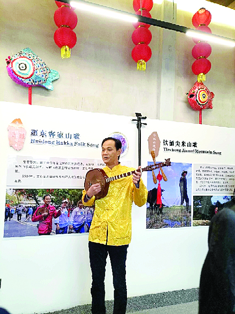 毛錦堂在展示館演唱惠東客家山歌。