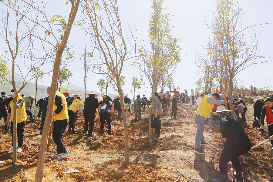 當(dāng)天,義務(wù)植樹(shù)活動(dòng)現(xiàn)場(chǎng)熱火朝天,黨員干部職工、企業(yè)家、志愿者個(gè)個(gè)干勁十足,扶苗、培土、踩實(shí)、澆水……經(jīng)過(guò)大家的努力,栽下香樟、櫻花、風(fēng)鈴木等近1000株綠植。