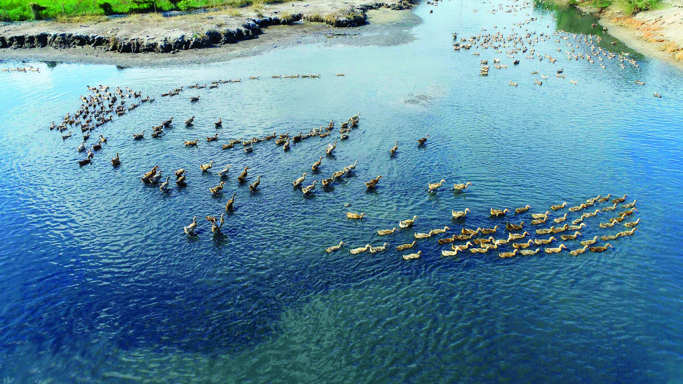 養(yǎng)殖的蛋鴨在惠東縣鐵涌鎮(zhèn)油麻地村的考洲洋河道上覓食。 惠州日報記者楊建業(yè) 攝