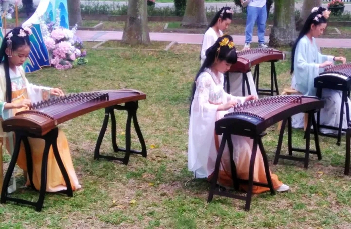 現(xiàn)場(chǎng)古箏彈奏表演。