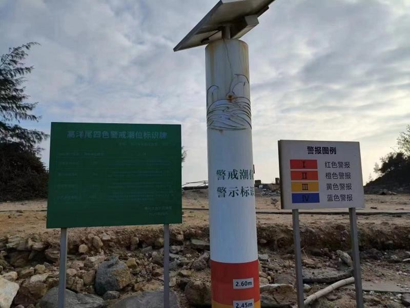 位于平海海邊的潮位警戒樁。 惠州日?qǐng)?bào)記者蔡偉健 特約通訊員葉衍達(dá) 攝