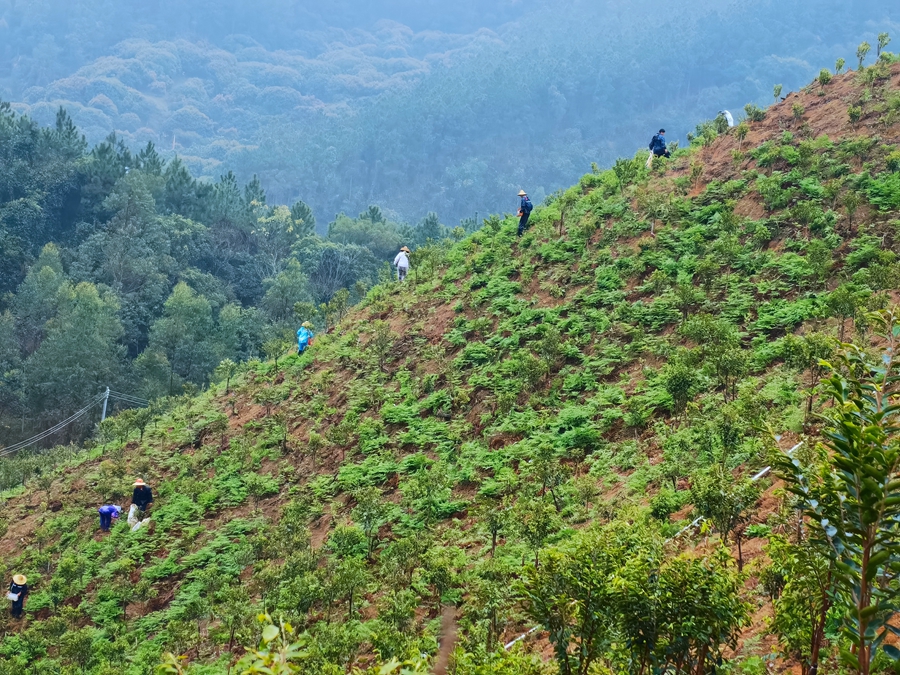 農(nóng)戶在稔山鎮(zhèn)一沉香基地施肥。 惠州日報(bào)記者洪鵲兒 通訊員李遠(yuǎn)忠 攝