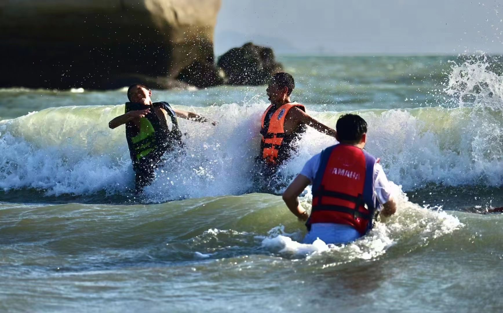 “住過(guò)那么多的酒店,再貴的酒店,再‘面朝大!姆块g,基本都是要穿越酒店大堂和走廊,才能抵達(dá)海灘。在觀滄海島宿讓我感受到推門就到海邊的快樂(lè)。沒(méi)想到距離家兩小時(shí)車程就能享受到這樣的旅行體驗(yàn)!睅е患覐臇|莞自駕到惠東的游客鄭先生感慨道。