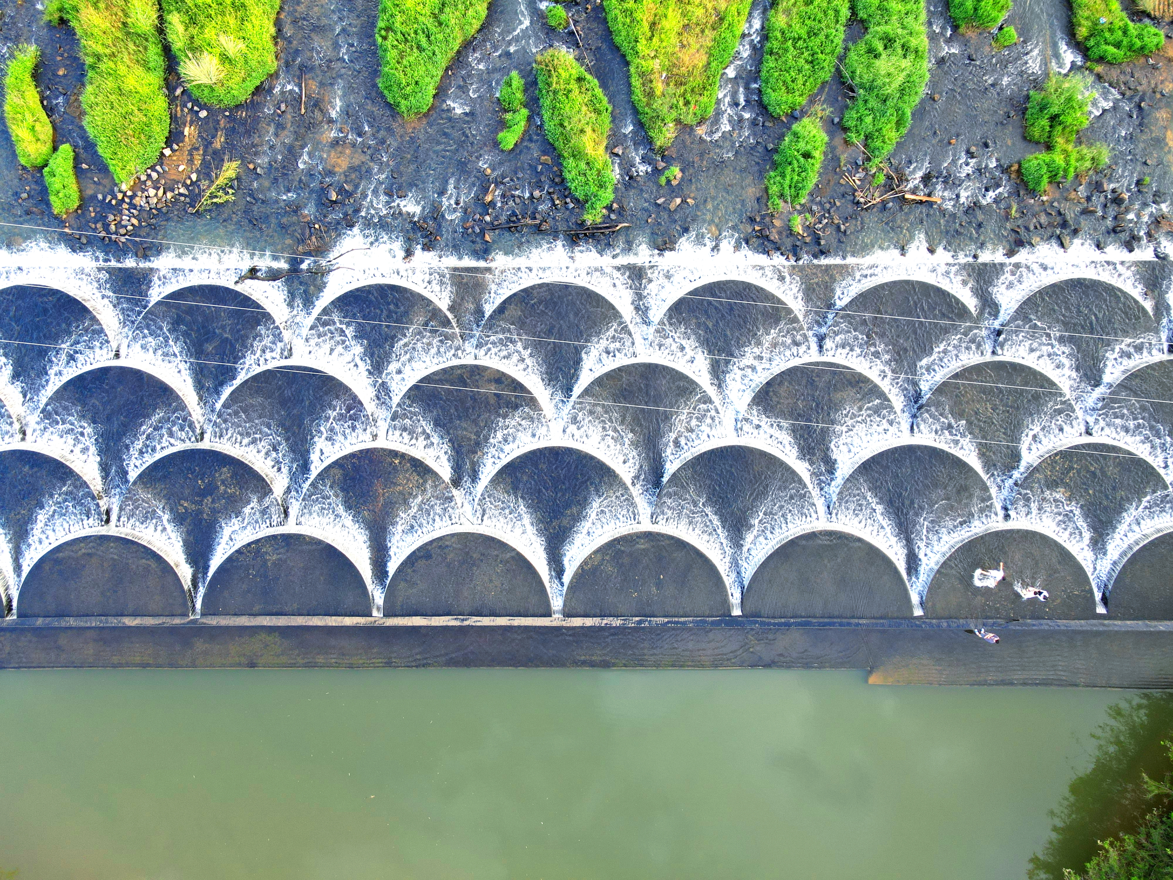 惠東縣安墩鎮(zhèn)老樓村網(wǎng)紅魚(yú)鱗壩,一片又一片的水壩像魚(yú)鱗,清澈的流水淌過(guò)魚(yú)鱗壩,鱗光閃閃,每一片魚(yú)鱗都是一塊小場(chǎng)地。游客游玩需注意安全。